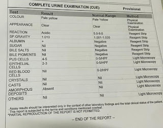 - Complete urine examination: