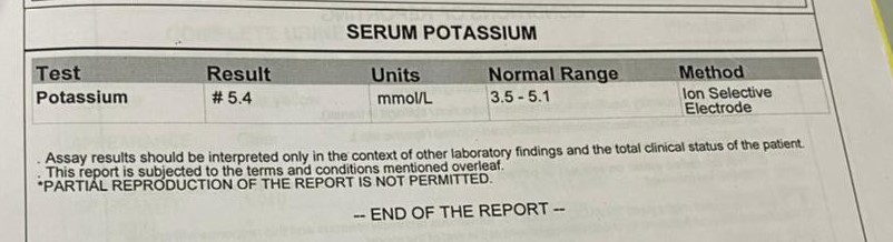 6. Serum Potassium: