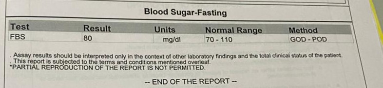 2. Blood sugar Fasting: