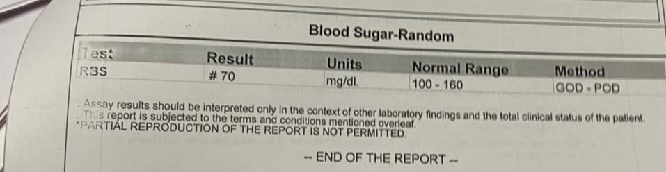 3. Blood sugar Random: