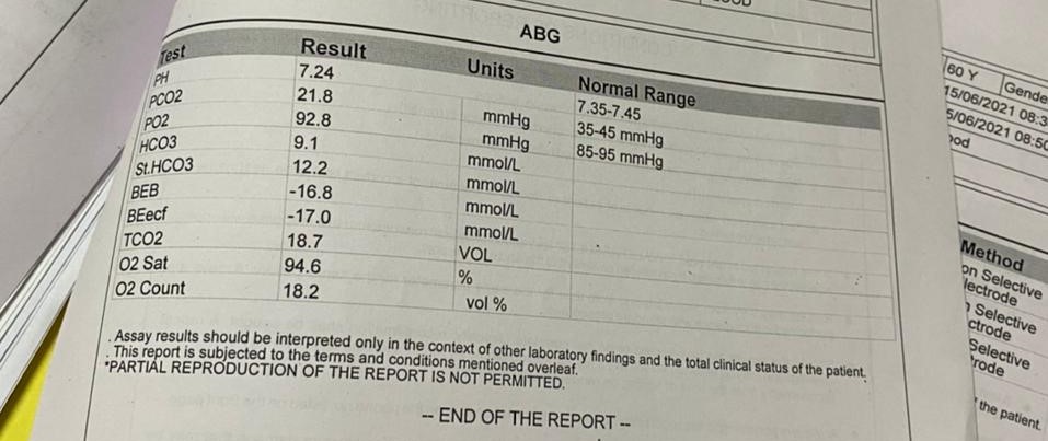 June 19, 2021 A 60yr old female presented to the OPD with chief complaints of pedal edema since 10 days, decreased urine output since 10 days and fever since 10 days. History of present illness: The patient was apparently asymptomatic 5 years back following which she was diagnosed with DM2 on checkup and on Teneligliptin 20 mg. In 2019 ( 2 years ago) she developed fever, shortness of breath and pedal edema and diagnosed with Acute kidney injury secondary to urosepsis and resolved conservatively after dialysis (4 sessions) Now presented with history of fever, high grade since 10 days, not associated with vomiting and loose stools . Patient complaints pedal edema bilateral and pitting type, with decreased urine output and burning micturition. History of past illness: Outside reports suggest acute kidney injury. Known case of diabetes mellitus since 10 years and on tab Teneligliptin 20 mg and not known case of hypertension, bronchial asthma, tuberculosis. Personal history: